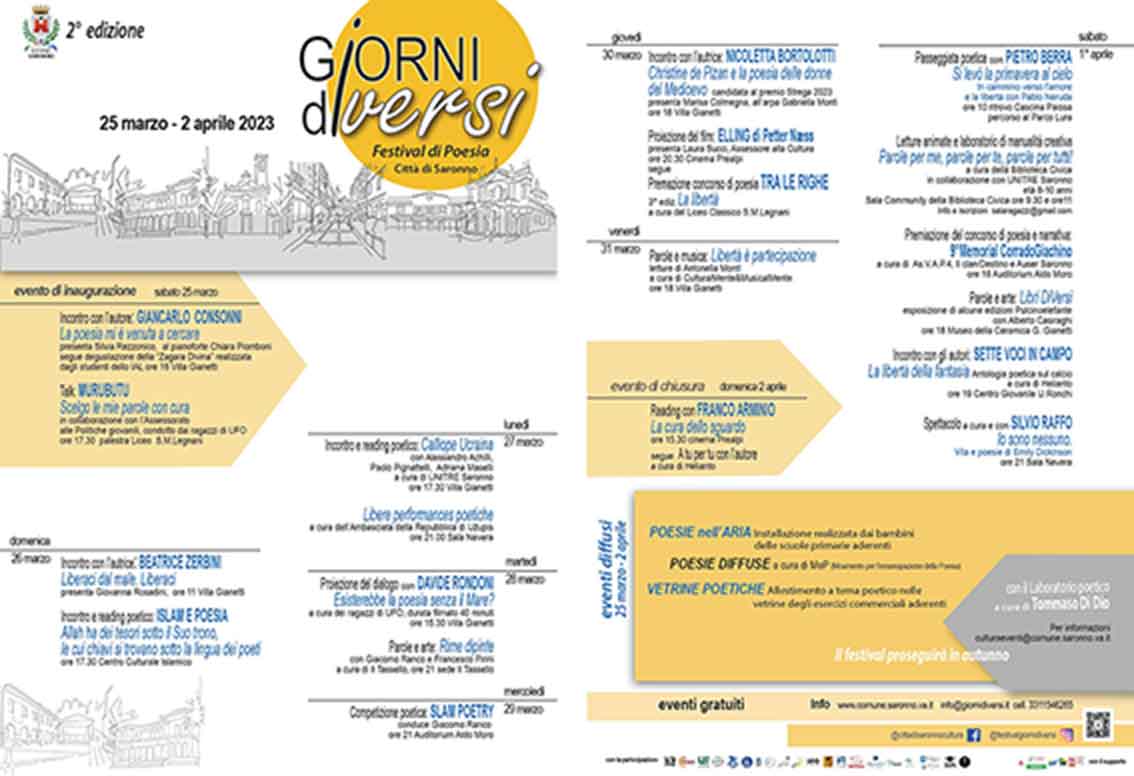 Il verso della poetessa Gaspara Stampa (XVI secolo) rappresenta il tema della seconda edizione del festival di poesia Giorni diVersi.