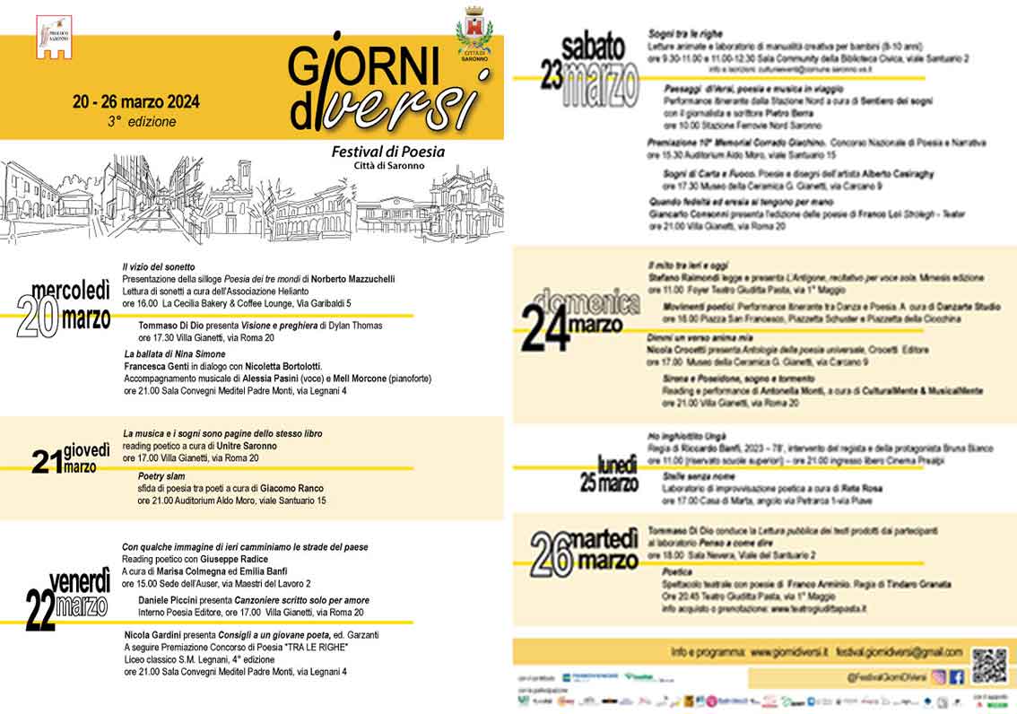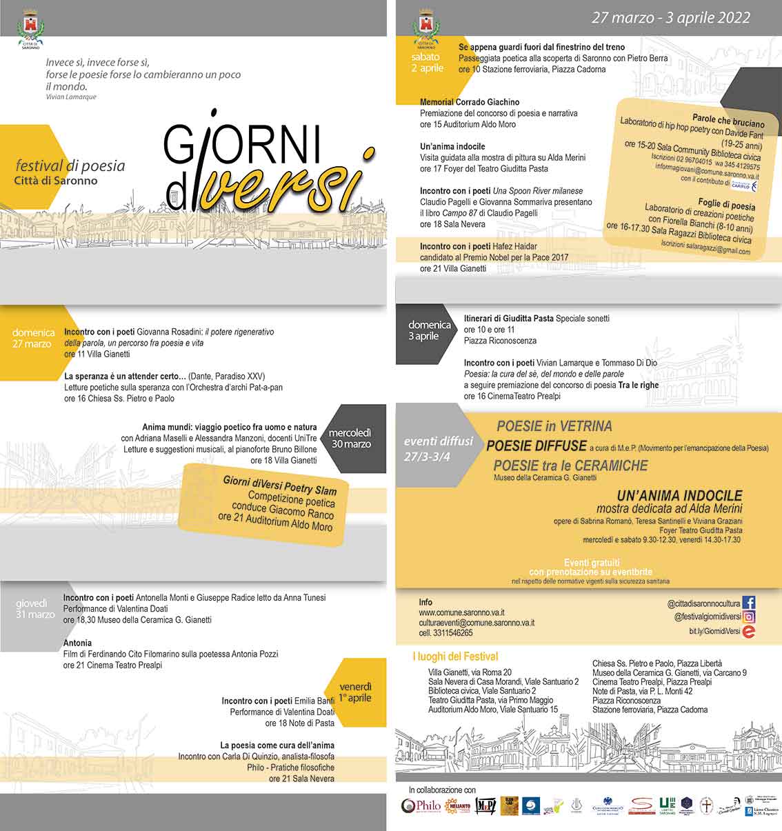 dalla volontà di coinvolgere Saronno (e non solo!) nell’esperienza di un linguaggio espressivo coinvolgente che ci emoziona e ci riguarda: quello della poesia.