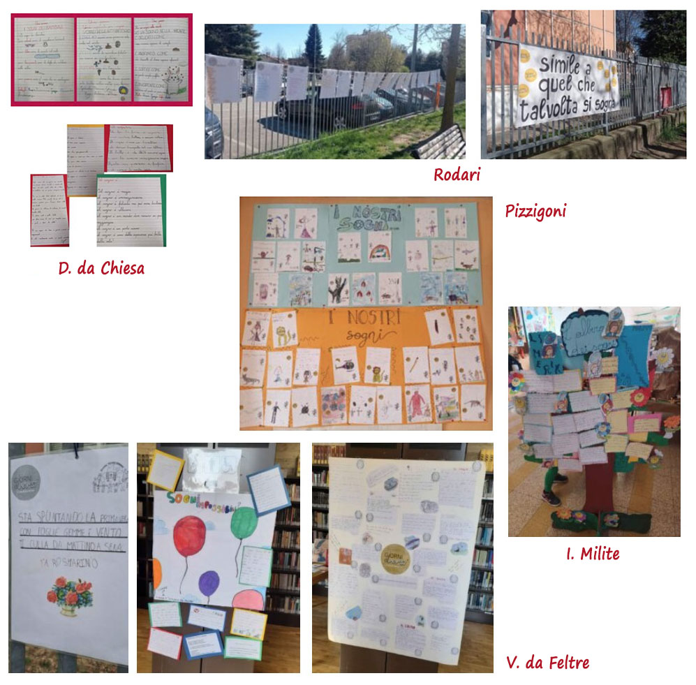 Alla scuola primaria Vittorio da Feltre gli alunni e le alunne hanno riempito di poesia e disegni la cancellata della scuolae i corridoi della nostra Biblioteca Civica comunale.