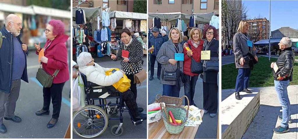 Mercoledì 19 marzo, prima delle 11, un gruppo di persone dell’UNITRE ha portato la poesia tra le bancarelle del mercato, all’altezza di via Pola. Armate di un sorriso aperto, hanno recitato, letto e donato versi ai passanti. Inizialmente qualcuno ha tirato dritto, ma pian piano la curiosità ha vinto sulla diffidenza. Chi si è fermato ha ricevuto in cambio un momento di bellezza, un frammento di emozione inaspettata: molti hanno ascoltato, alcuni si sono commossi, altri hanno sorriso. Un piccolo gesto che ha spezzato la frenesia quotidiana, ricordando a tutti il valore della condivisione, della gentilezza, della riflessione e della bellezza.